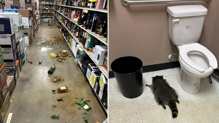 Animalul, aflat in stare comatoasa, si-a petrecut noaptea la adapostul local pentru animale, dar a fost eliberat ulterior. Un raton care a lesinat de beat dupa ce a facut ravagii intr-un magazin de bauturi alcoolice din Virginia este suspectat de alte doua „spargeri”. Imaginile cu sticle sparte si animalul intins langa toaleta au devenit virale saptamana trecuta, dar femeia care l-a gasit a dezvaluit ca ratonul are antecedente. „Nu este…